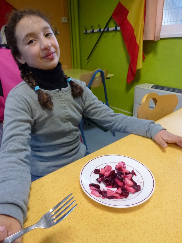 bu du thé du samovar et nous avons goûté de la salade à la betterave.